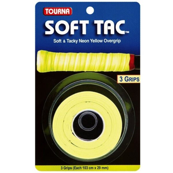 Il Tourna Soft Tac Overgrip in Neon Yellow offre una presa morbida e confortevole con un tocco di colore. Questa confezione da 3 è perfetta per i giocatori che cercano sia comfort che visibilità. La sua superficie appiccicosa assicura una presa sicura, rendendolo ideale per partite intense. Il colore giallo neon è luminoso e accattivante, aggiungendo un elemento divertente alla tua attrezzatura.